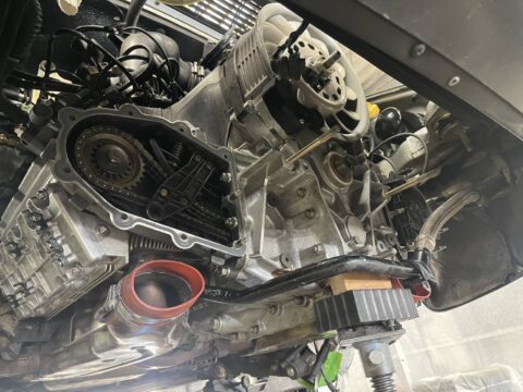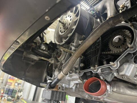 写真は空冷ポルシェでは定番とも言える「エンジンオイル漏れ修理」の作業中の様子です。