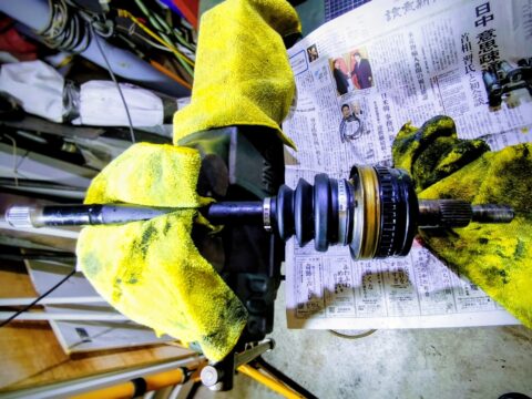 今回は点検の中で ドライブシャフトブーツの破れ を確認したため、ブーツ交換作業を実施しました。