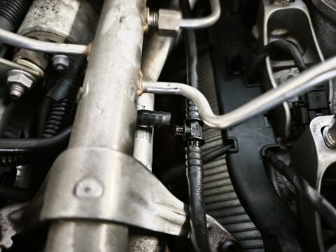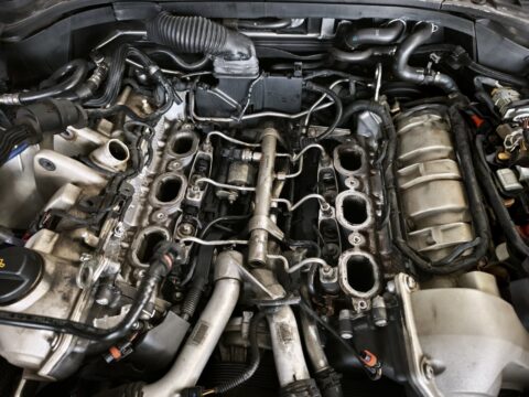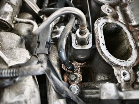 漏れの原因を調査したところ、インテークマニホールドの脱着が必要な状況でした。