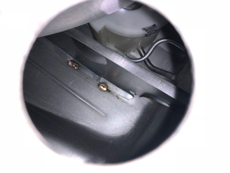 レベルセンサーの穴から中を確認します。コーティングがはがれていたり、サビも見られひどい状態です。